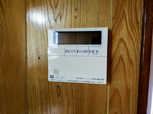 給湯器リモコンです。追焚・自動湯張り機能が使えます。