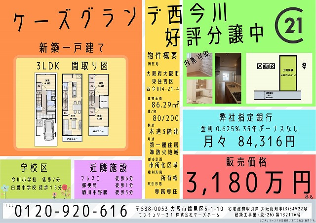 鶴見区・城東区・旭区の不動産は株式会社ケーズホーム > 株式会社ケーズホームのスタッフブログ記事一覧 > 西今川 新築戸建をご紹介