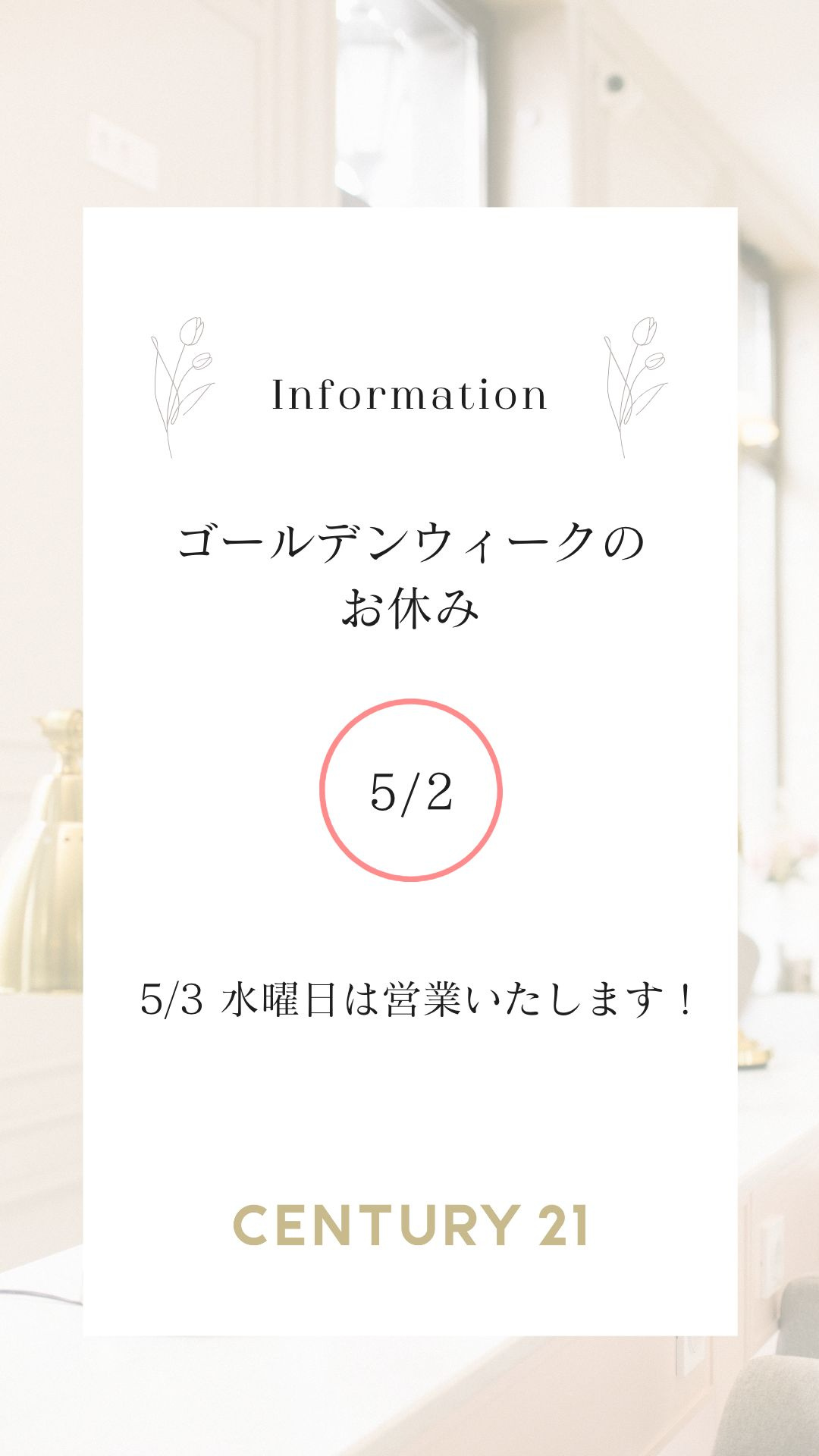 鶴見区・城東区・旭区の不動産は株式会社ケーズホーム > 株式会社ケーズホームのスタッフブログ記事一覧 > GW期間の休業日のお知らせ