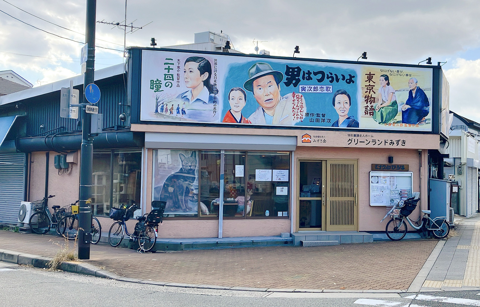 大通り沿いのどーーーんと懐かしい色々のデザインが看板のミナクルひろば。