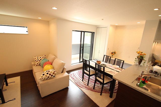 リビングダイニングです。バルコニーからの心地い光が部屋中を明るく!